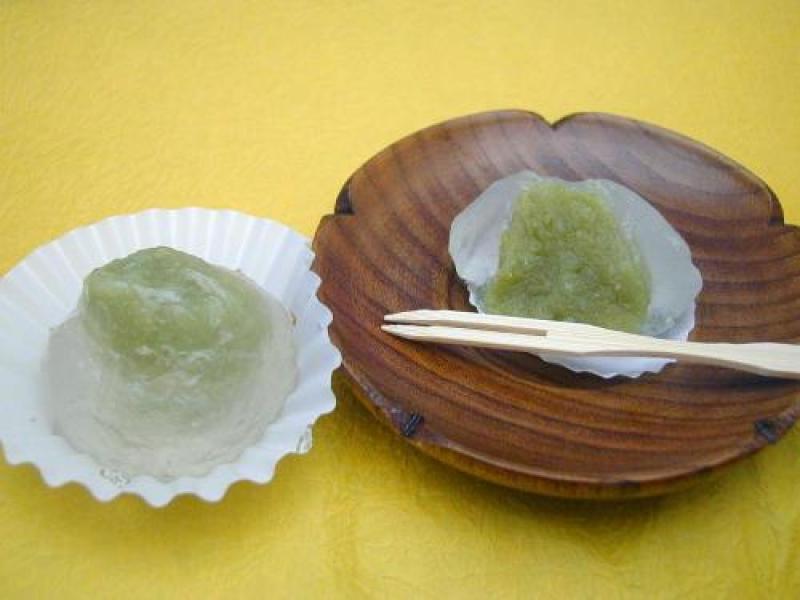 「水饅頭 ずんだあん」¥100 本葛でずんだあん(えだまめあん)を包みました。東北地方名物ずんだあんをお楽しみ下さい。