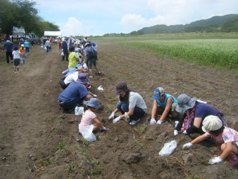 「ジャガイモ収穫体験」 体験農園でのジャガイモ堀りは人気の体験学習。 収穫のよろこびやたのしさを体感できるチャンスです。 収穫可能時期/7月中旬~8月下旬