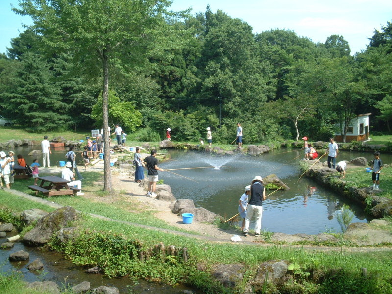 「ニジマス釣堀」 釣ったニジマスを、その場で塩焼きやから揚げにして食べる事ができます。