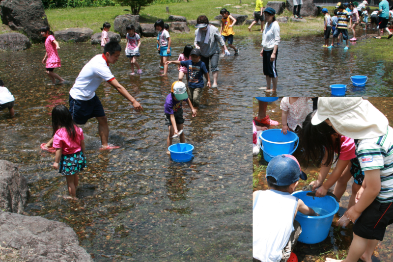 「魚のつかみ取り体験」 ニジマス・イワナなどのつかみ取り体験。 つかんだその場で焼いてもらえるので気軽にどうぞ。