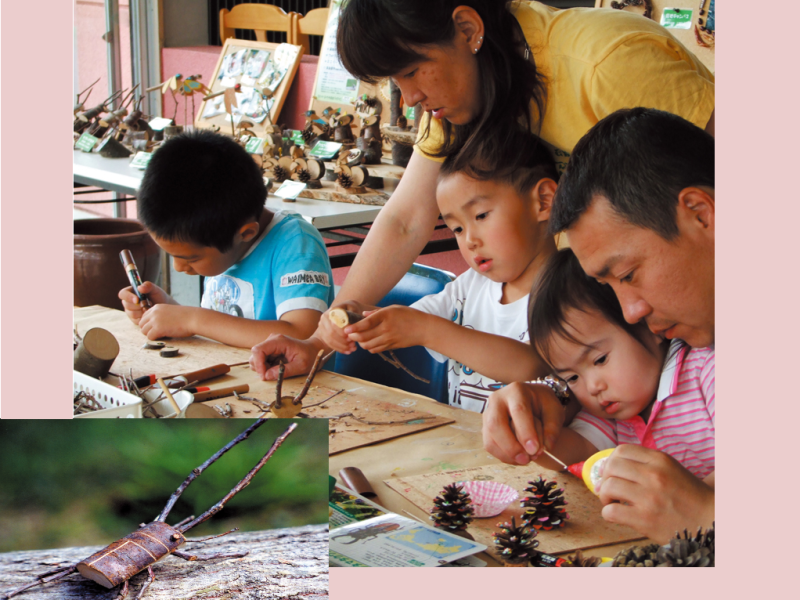 「森の工作体験」 体験をテーマにしたオリジナル企画です。 家族で、グループでぜひおいで下さい。