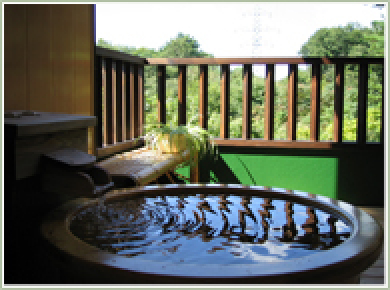 檜の露天風呂 貸切の出来る檜の露天風呂や内風呂。時を気にせず気ままに入れる展望檜風呂をご用意しております。