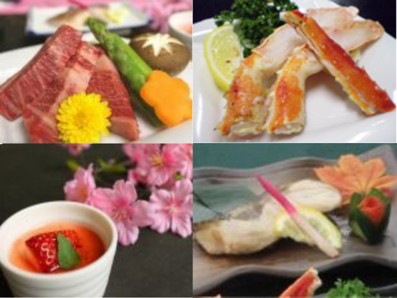 夕食は、当館自慢の「和食膳」にておもてなし致します。 朝食は、和洋バイキングまたはセットメニューをご用意いたします。 す。旬の素材を活かした季節料理をご堪能下さい。